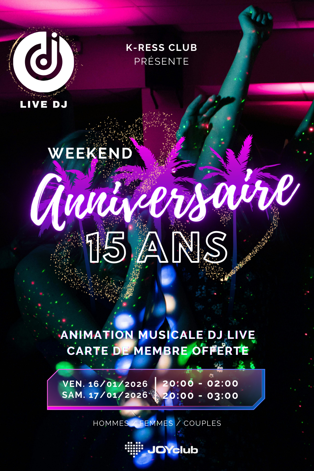 *L’inscription n’est pas obligatoire pour nos événements. Vous pouvez vous inscrire sur notre page JOYclub pour signaler votre présence aux autres membres / Participants si vous le souhaitez 😉