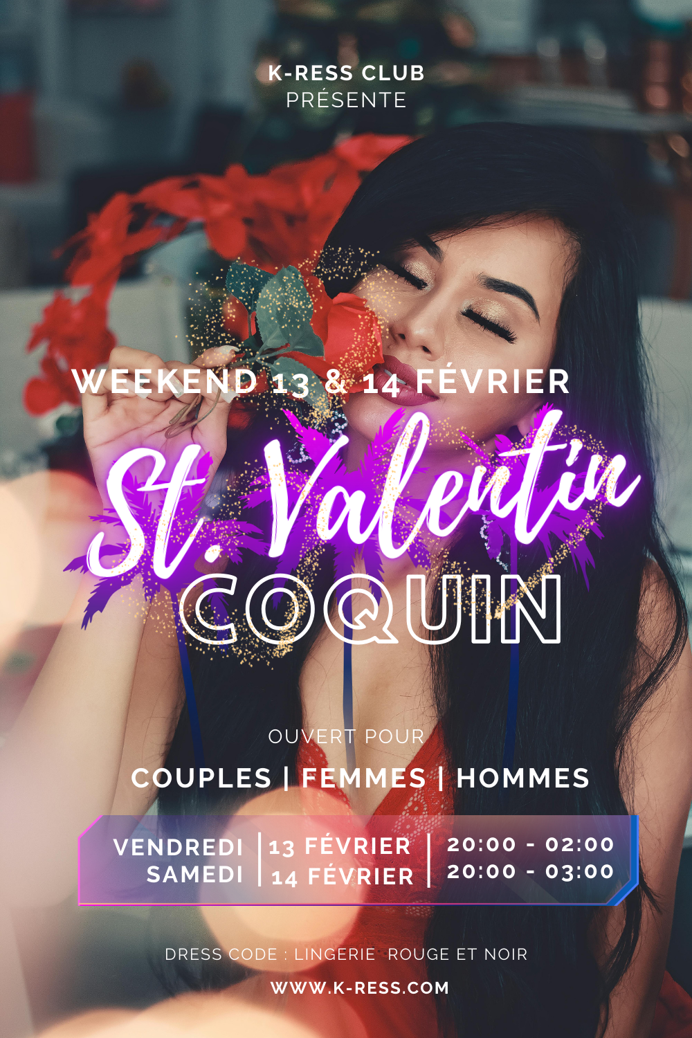Dans une jolie maison sur deux niveaux, le K-ress est situé dans un endroit tranquille et discret. Pour votre service nous avons mis à disposition un vaste parking de plus de 100 places, Surveillance vidéo, Accueil dans un hall d’entrée en toute intimité, Piste de dance et DJ. Pour votre confort nous avons un Bar, une salle fumeurs, un salon ambiance avec des canapés, un buffet varié, salles de douche et SPA.